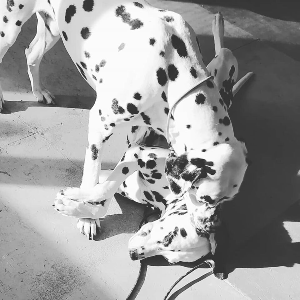 Первый далматин у меня появился в далеком 2013м году. А может и не очень далеком. Вообще, я ждала коричневого далматина, очень хотела. Но та собака не родила, не сложилось. Потому взяла другую собаку, о чем ни на секунду не пожалела. Но мечта о коричневой собаке осталась. Я ее сильно не озвучила, но часто думала, что вот, будет следующий помет у моего заводчика, и там будет мне коричневая собака ну просто обязательно. Будет он на букву Г. Гарм, я так и придумала, будет у меня Гарм, как музыкант крутой из Ульвер и Боркнагар! Но заводчица что-то не спешила рожать щенков... Зато она привезла крутейшего пса из Питера. Как производителя себе. Классного, смешного плюшевого мишку, совсем не с плюшевым характером. Ну, все как я люблю. Она в шутку предлагала мне его, но у меня тогда начались отношения с будущим мужем, я не знала, как он отнесется ко всему этому... И тут мне ставят диагноз... детей... скорее всего не будет никогда. А мы планировали свадьбу, думали... и я уже не знаю, надо ли нам