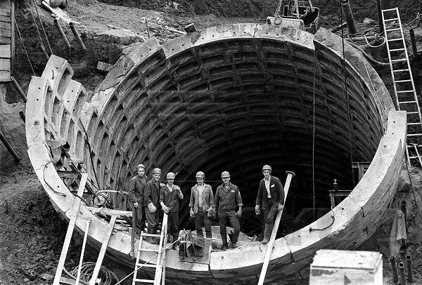 Именно так мы бы могли увидеть в наше время строительство односводчатой станции глубокого заложения. Если бы они, конечно, продолжали строиться.