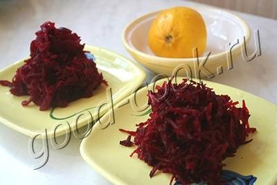 Готовить этот салат рекомендуется заранее, например, в обед. А употреблять на ужин. Такая "настоенная" свёкла вроде бы лучше усваивается. СОСТАВ На 2 порции 50г сырой свёклы, 100г варёной свёклы, 2 ст ложки сока лимона или растительного масла посмотреть калорийность» Свёклу нужно взять тёмно-бордовую, без белых прожилок.