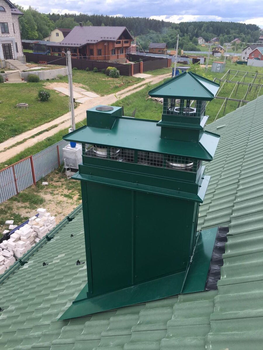 Дымник - это один из необходимых доборных элементов кровли, который венчает дымовую трубу и придаёт кровле законченный аккуратный вид. Так ли обязательна его установка на дымовую трубу или это, так сказать, дополнительная опция? Отвечая на этот вопрос, важно понять, какую функцию выполняет этот элемент кровли? При выборе дымника также нужно учитывать, что в холодное время года мы сталкиваемся с таким нежелательным явлением как выпадение конденсата. В результате на дымнике могут образовываться сосульки и наледь, а кирпичная труба в этом месте будет активно разрушаться. Чтобы этого избежать, в колпаке обязательно должен быть предусмотрен отдельный выход для дымохода от отопительного котла, который сверху ничем не закрывается. В этом случае отработанные газы беспрепятственно удаляются в атмосферу. Изготавливают дымники из материалов, устойчивых к воздействию окружающей среды. Это может быть оцинкованная или нержавеющая сталь, медь или сплав титана с цинком. По типу конструкции дымников су