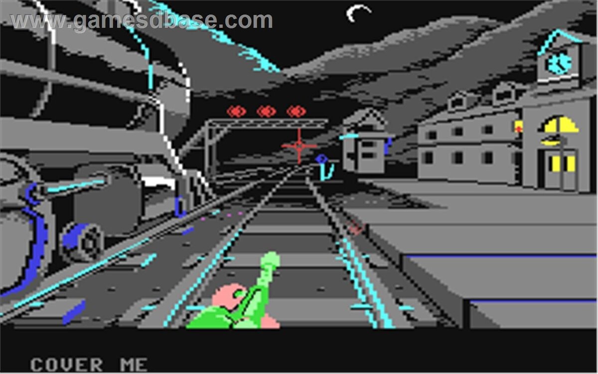 Элементами 2.5D известны шутеры от первого лица Doom и Wolfenstein 3D. Слева представлен фрагмент The Train: Escape to Normandy (1987 год) для Commodore 64.