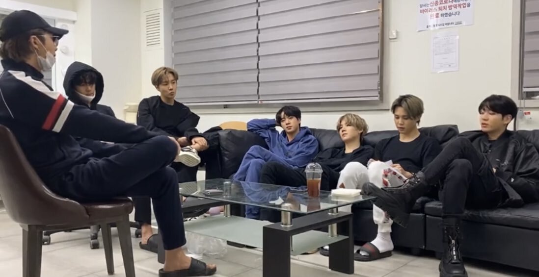 Вот до чего доводят ночные посиделки с фанатами на сервисах общения, потом игра в зомби с другими поклонниками, прямые эфиры и прочее. На недавнем собрание всех участников BTS, по поводу нового альбома Тэхён пришёл, но, выглядел явно не лучшим образом. Обычно, самый инициативный айдол, сидел скромно молча и явно заснул, и это при том, пока остальные разговаривали по новому альбому.