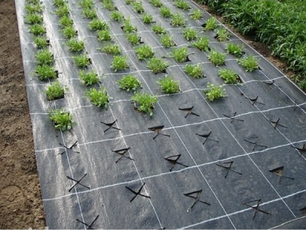 Как высаживать картофель, чтобы получить наиболее ранний урожай. Каждый дачник может рассказать вам свой подход. Получаться будет по-разному. Всё зависит от целей, которые ставит перед собой дачник. Кто-то хочет ранний урожай, но не готов рисковать и старается обезопасить посадки от заморозков. Кому-то нужно как можно скорее, а другие хотят получить с каждого клубня больше чем обычно. Я знаю много методик и уверена, что их в разы больше. Сегодня не про это. В этой статье я хочу рассказать про способ, которым со мной поделились мои северные друзья и который для картофеля используют редко, а возможно и зря. Для этого нам понадобится спандбонд, чёрный спандбонд. За неделю до высадки готовим грядку. Выбранный участок полностью накрываем чёрным спандбондом и закрепляем его. Сажать можно как обычными рядами, так и в шахматном порядке. Мне больше нравятся обычные ряды, так как я удобряю грядку навозом и мне так проще позже при посадке в него попасть картофелиной. На поверхности отмечае