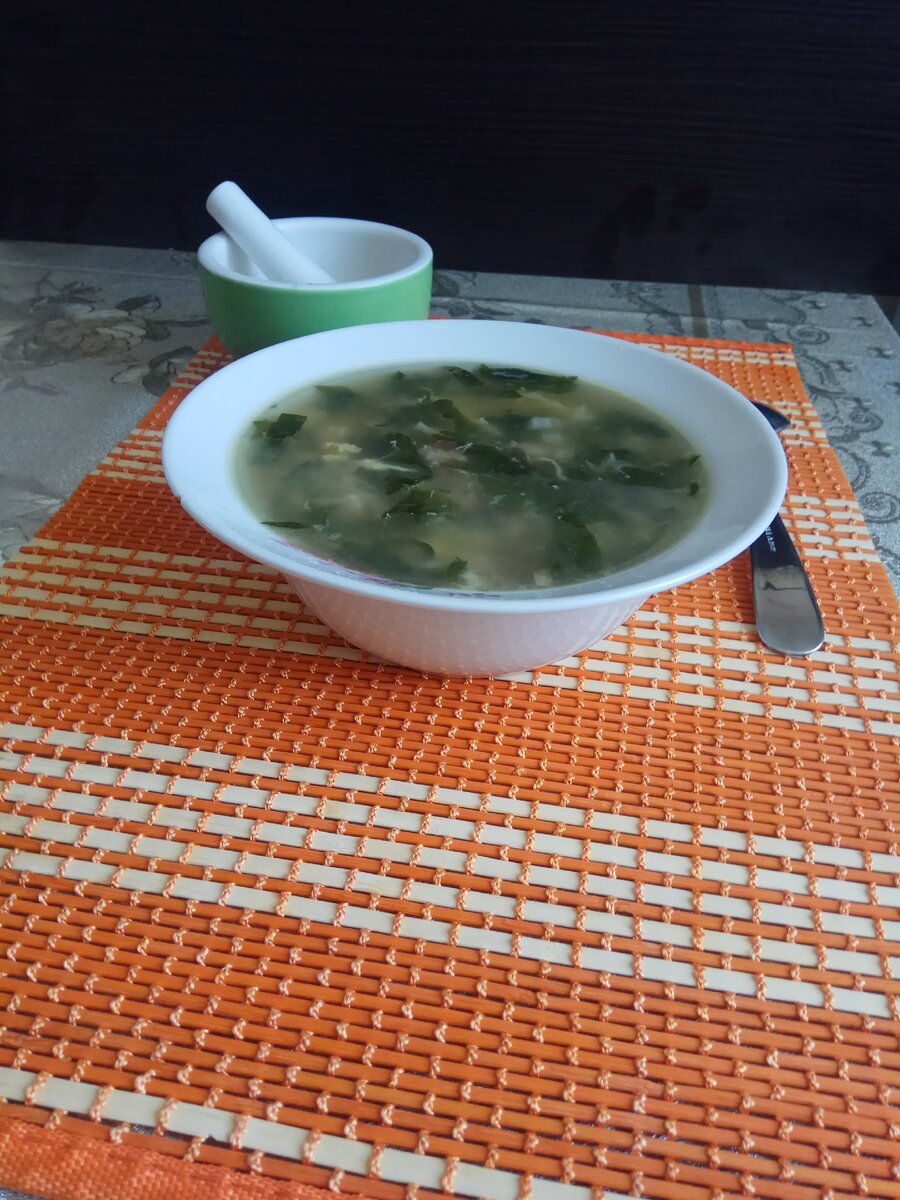Рецепт легкого весеннего супа из свежего шпината с яйцом, на скорую руку