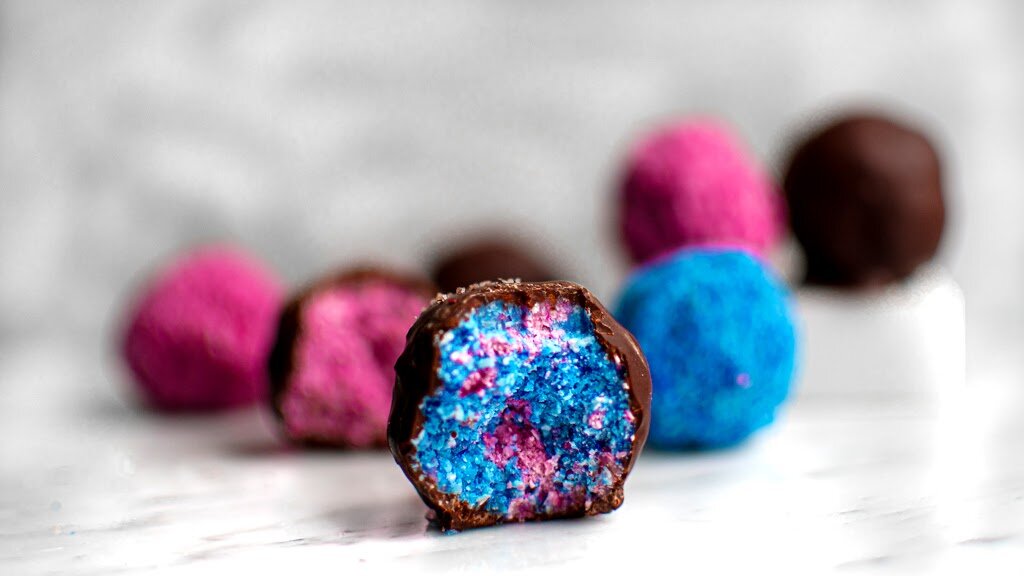 Очень сладкий десерт без сахара!. Эти кокосовые шарики напоминают маленькие радужные камни и имеют абсолютно божественный вкус. Хотите попробовать? Думаю этот рецепт может заслуженно попасть в #нескучнодома только от его вида. Идея приготовить это красочное совершенство возникла в основном из-за того, что я купила красивые натуральные красители, которые явно соблазняют покрасить все, что вы можете с ними :) Вы можете выбрать один из оттенков фиолетового, розового, зеленого, желтого оранжевого. Но также и синего, что, вероятно, является самым захватывающим, потому что невероятно, что такой интенсивный синий цвет создает естественный краситель, а именно синяя спирулина. И потому как у нас было много кокоса дома, который бы прекрасно получился благодаря своему светлому цвету, я выбрала его на основу. Для шариков вам нужен только качественный кокос и хороший миксер (и, конечно, красители, если вы хотите, чтобы шарики были красиво окрашены). Основа из тертого кокоса. Как и в случае с любым
