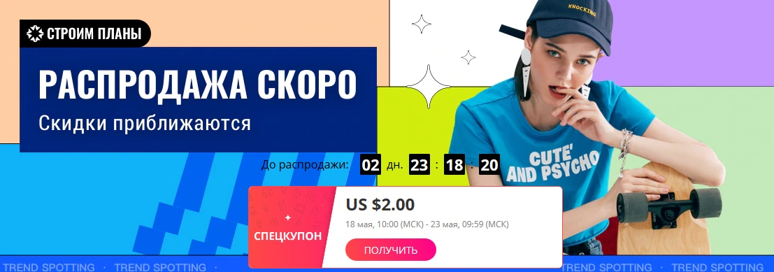 ✅ Алиэкспресс - новая Распродажа, старт 18.05.20 в 10:00 Разогрев: 15 мая с 10:00 мск - по 18 мая 09:59 мск Сама распродажа: 18 мая с 10:00 мск по 23 мая 09:59 мск ➡ Главная страница распродажи ➡ Игра "весёлый ниндзя" (только в мобильном приложении) Можно выиграть купон 1/8$, монетки или главный приз 3 ночи в шикарном отеле в Альпах! ➡ Хиты продаж ➡ Крутые бренды В разделе предусмотрена раздача жирных купонов продавцов (подробнее про виды купонов Алиэкспресс) - д0 50% скидки. ➡ Быстрая доставка 3-10 дней для РФ ➡ Огромные скидки ➡ Покупайте на спецкупоны Получаем спецкупоны (узнать что это) ➡ Центр купонов (все купоны) ➡ Промокоды на скидки (для РФ) STROIMPLANY3000 - на 3000 руб. от 36000 руб. STROIMPLANY2000 - на 2000 руб. от 18000 руб. STROIMPLANY1300 - на 1300 руб. от 12000 руб. STROIMPLANY750 - на 750 руб. от 8700 руб. ➡ Промокоды на скидку (для Украины) MAYAE7MAY – 7$ от 50$ MAYAE4 - 4$ от 5$ для новых покупателей