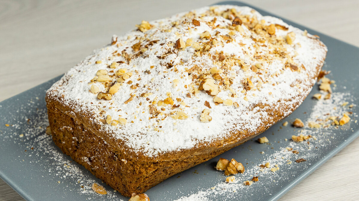 Сахарная пудра для украшения Способ приготовления: 1. Смешиваем масло и сахар, перемешиваем 2. Добавляем яйца и хорошо взбиваем миксером примерно 2-3 минуты 3. Добавляем в тесто соду и имбирь, перемешиваем 4. Затем просеиваем муку и перемешиваем до однородного состояния 5. Морковь натираем на крупной терке и измельчаем грецкие орехи. Подготовленные ингредиенты добавляем в тесто, аккуратно перемешиваем лопаткой. Тесто готово 6. Перекладываем тесто в форму для выпечки. Выпекаем морковный кекс в заранее разогретой духовке 30-40 минут при 180°. Готовность проверяем зубочисткой (если зубочистка сухая, значит кекс готов) 7. Готовому кек