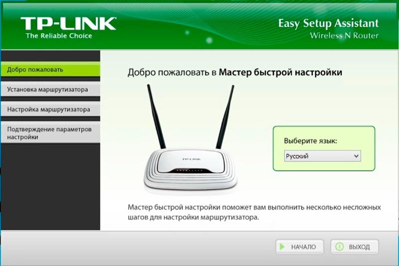 Начинается настройка с входа в браузер Internet Explorer. В строке ввода указываем следующий адрес: 192.168.1.1. Если вы когда-то ставили proxy-сервер, то его нужно отключить. После ввода адреса перед вами появится окно безопасности: логин – admin, пароль – admin. Кстати, на днище самого роутера Вы найдете свой логин и пароль, посмотрите, не поленитесь!Перед Вами появится окно роутера. Нам необходимо выбрать мастера «Quick Setup» (быстрая настройка) и нажать «Next» (далее).Инструкция для Dynamic IP – автоматические настройки. Если Ваш провайдер предоставляет именно такие настройки, то ставим галочку напротив Dynamic IP и нажимаем кнопку «Next».Теперь задаем основные настройки: — В поле SSID задается название будущей точки подключения Wi-Fi. — Раздел Wireless Security отвечает за тип шифрования – указываем WPA-PSK. — В поле Password необходимо ввести пароль.Остальные настройки в этом окне можно оставить нетронутыми. Нажимаем «Next». Установщик сообщит нам, что настройки вступили в силу