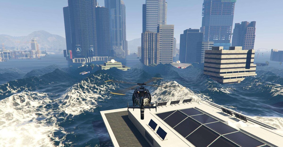 Практически все самые интересные города были подводными: Атлантида, Rapture, город гунганов. Поэтому, почему бы и не затопить Лос-Сантос огромными волнами цунами?