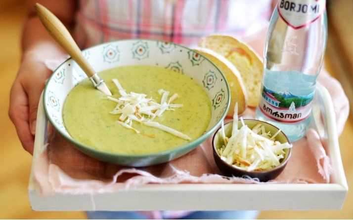 Соль Промойте горошек. Залейте водой и варите. Горошек должен стать мягким. Мелко нарежьте лук и чеснок. Тушите на медленном огне. Нарежьте зелень. Добавьте лук и сливки в варёный горошек. Вскипятите. Посыпьте солью, добавьте зелень и взбейте блендером. Подавайте вместе с натертым сыром.