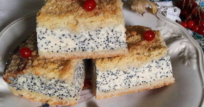 ингредиенты: приготовление: 1. Все ингредиенты не для начинки смешиваем. Должна получиться рассыпчатая крошка. 2. Смешиваем творог, яйцо, блок, ванилин,мак и кукурузный крахмал. В силиконовую форму выкладываем часть крошки, затем начинку и оставшуюся часть крошки. Выпекаем при 180 градусах 40 минут. Сразу не вынимаем, даём остыть. Приятного аппетита!