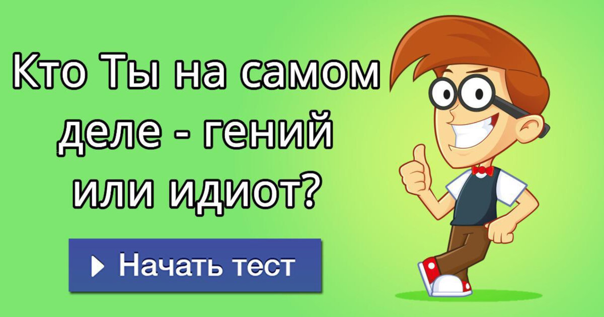 Почти каждый человек хотел бы испытать свои знания. Благодаря данному тесту , вы сможете узнать, вы- идиот или гений. Отвечая на каверзные вопросы, выбирайте вариант, который вы считаете верным и запоминайте его. В конце теста, вы сможете узнать ваши результаты. 1)В аквариуме 12 рыб, и все, кроме 9, умерли. Сколько живых рыб осталось в аквариуме? 1-9 рыб 2-3 рыбы 4-7 рыб 2)Может ли мужчина жениться на сестре своей вдовы? 1-Да 2-Нет 3)Представьте, что перед вами 2 мамы, 2 дочери, 1 бабушка и 1 внучка. Сколько человек вы видите? 1-4 человека 2-3 человека 3-6 человек 4)У трёх маляров был брат Иван, а у Ивана братьев не было. Такое возможно? 1-Да 2-Нет 5)Отец с сыном попали в автокатастрофу. Отец скончался в госпитале. К сыну в палату заходит хирург и говорит, показывая на него: «Это мой сын». Могут ли эти слова быть правдой? 1-Да 2-Нет 6)Если шесть лис ловят шесть кур за шесть минут, то сколько понадобится лис, чтобы поймать 60 кур за 60 минут? 1-6 2-10 3-8 7)Что больше: сумма всех цифр и