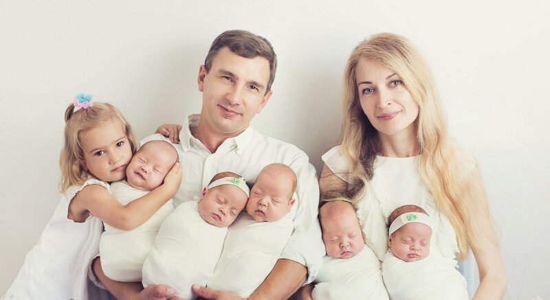 Добрый день, дорогие читатели, сегодня хочу поделиться с вами историей одной обычной женщины или матери-героини, это уже вам судить. Оксана Кобелецкая и Сергей Семенов были самой обыкновенной одесской семьей. У них подрастала красавица-дочка Алиса. Когда дочери исполнилось два года Оксана узнала, что снова беременна. А после планового УЗИ семью буквально ошарашили новостью: вы ждете пятерых детей. Врачи сами не могли долго поверить , что настолько многоплодная беременность может быть естественной. Будущую многодетную маму сразу предупредили, что могут быть определенные проблемы выносить всех малышей, поэтому предлагали удалить часть эмбрионов. Но родители были категорически против этого. Оксана с самого начала решила, что если Бог дал пятерых, то он и сохранит их. Так и получилось. Оксана родила всех пятерых здоровыми, только немного маловесными. Ее пятерняшки - это две пары близнецов: мальчики - Влад и Денис и девочки - Саша и Даша, и еще один мальчик Давид.