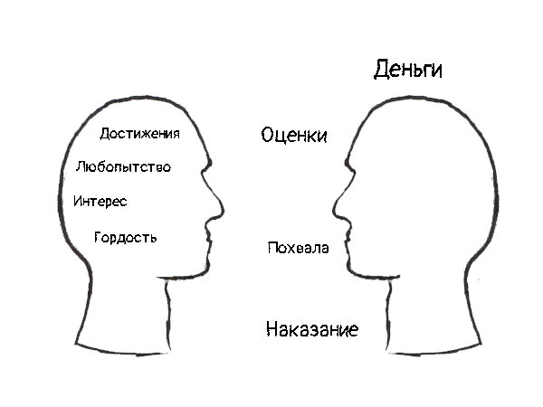 Когда у нас не получается заниматься чем-то систематически, мы думаем, что дело в количестве мотивации. "Мне не хватает мотивации, чтобы закончить курс по машинному обучению", "У меня пропала мотивация, поэтому я перестал ходить в зал". Вот если бы у нас была сильная мотивация, мы бы доводили дела до конца. Это не совсем так. Количество мотивации определяет то, начнем ли мы в принципе что-то делать: решимся ли купить абонемент в зал, запишемся ли на курс. Но именно качество мотивации определяет то, как долго мы будем придерживаться какого-то поведения. И вот тут происходит главный затык у большинства людей. Мотивация бывает внешняя и внутренняя (1). Внешняя мотивация Внешняя мотивация — знакомый всем "кнут и пряник". Это когда мы делаем что-то для получения внешних наград (повышения, денег, хороших оценок в школе) или в целях избежания наказания ("приду на работу вовремя, чтобы не штрафанули"). Эта мотивация не связана с самим действием. "Я хожу в зал, чтобы похудеть или лучше выгля