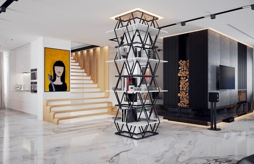 Не секрет, что в основе архитектуры стоит геометрия, поэтому простые формы элементов интерьера, такие как комоды, столы, кресла, светильники, добавляют яркости и выразительности образу. Больше всего это заметно, если внимательно следить за соблюдением гармонии в пропорциях. В качестве ярких примеров использования в интерьере лаконичных и в то же время минималистичных геометрических форм можно привести светильники в форме шаров или кубов, тумбочки-пирамиды, пуфы кубической формы, журнальные столики в форме шестиугольника и др.