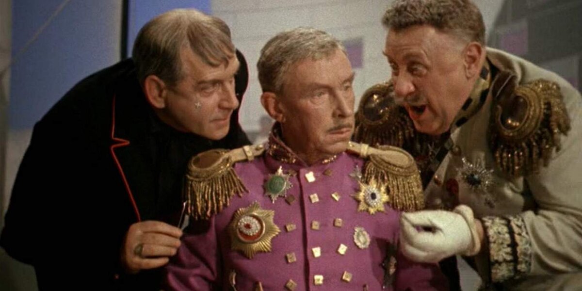 И так далее. То есть весь фильм составлен практически из таких вот огненных диалогов, в которых вы можете видеть пародию и сатиру на неприятный лично вам политический режим.