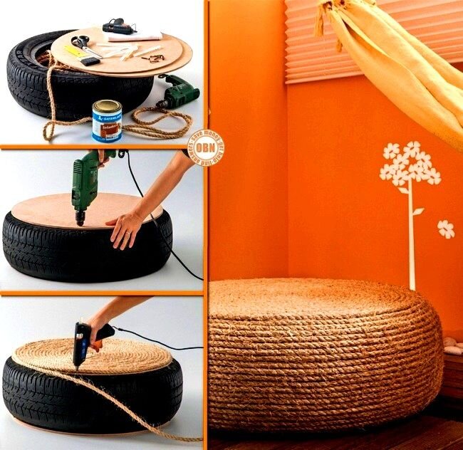Шина + веревка = отличный столик!