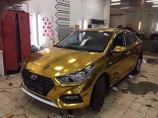 Фото Hyundai Solaris в золоте развеселило пользователей социальных сетей