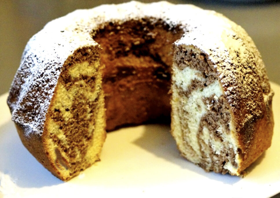 Хлеб банановый — это выпечка, которая придётся по вкусу каждому. Нежный, не слишком сладкий, влажный и пахнущий бананами. Такой хлеб, безусловно, подойдёт к предстоящему празднику или просто к чаю. Преимущества: просто и быстро готовить. Кроме того, для его приготовления не нужно использовать миксер, а в тесто можно добавить другие добавки: фрукты, шоколад, орехи или специи. Нам нужно на 15 порций: 2 больших, спелых банана; 260 гр. муки; 150 гр. тростникового сахара; 20 гр. какао без сахара; 1 чайная ложка соды; щепотка соли; 30 мл. подсолнечного масла; 80 мл. молока; 6 столовых ложек горячей воды; Форма для кекса. Ход приготовления Разогреваем духовку до 180°C. В большой миске смешиваем муку с пищевой содой и щепоткой соли. Отдельно тщательно измельчаем вилкой бананы, сахар, масло и молоко. Влажную смесь добавляем в муку и смешиваем до получения однородной массы. В этот момент вы можете также добавить любые добавки – орехи, сухофрукты... Получившееся тесто делим на две части: в одн