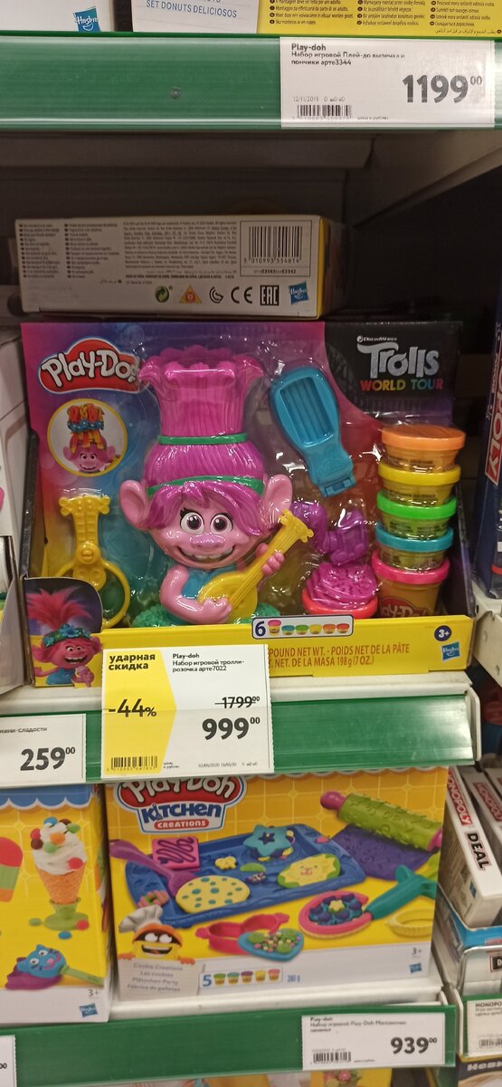 Всем здравствуйте. Сегодня была в окее, обратила внимание на акции в отделе с игрушками. Много игрушек по хорошим скидкам, смотрите сами. Для тех, кто любит Троллей, очень хорошая скидка на набор Play-doh. Будет отличным подарком! Отличные скидки, можно купить что-то на подарки. Я не смогла пройти мимо и купила деткам маленькие игрушки. Заплатила всего 354 руб. Всем спасибо за просмотр, подписывайтесь на мой канал.