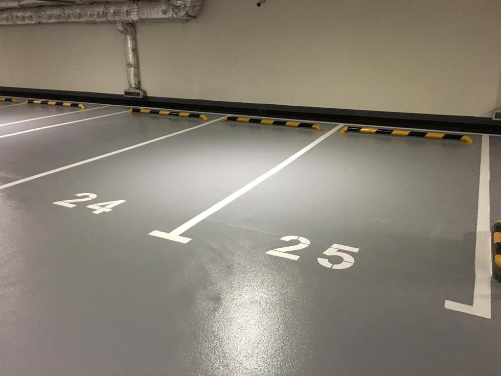 Оптимальное решение для полов в паркинге - шероховатая высоконаполненная полимерная система покрытия не только в зоне въездной рампы, но и в зонах стоянки, проездов и поворотов-разворотов. Ни для кого не секрет, что многие водители в России в отличие от Европы предпочитают шипованную резину в зимний период. Шипы на паркинге (особенно в зоне непосредственно стоянки машин) при поворотах руля оставляют на гладком покрытии так называемые «снежинки» - множественные царапины. После полугода-года такой эксплуатации покрытие теряет свой первоначальный лоск и уже выглядит не очень опрятно. Применение шероховатой системы покрытия позволяет визуально нивелировать неизбежные эксплуатационные дефекты и они не так сильно бросаются в глаза, а значит и само покрытие дольше имеет внешний вид «нового». Ещё один неоспоримый плюс шероховатого покрытия - травмобезопасность в сравнении с гладкими решениями, что актуально в зимний период, когда с припаркованных машин стаивает и стекает снег и противоледные