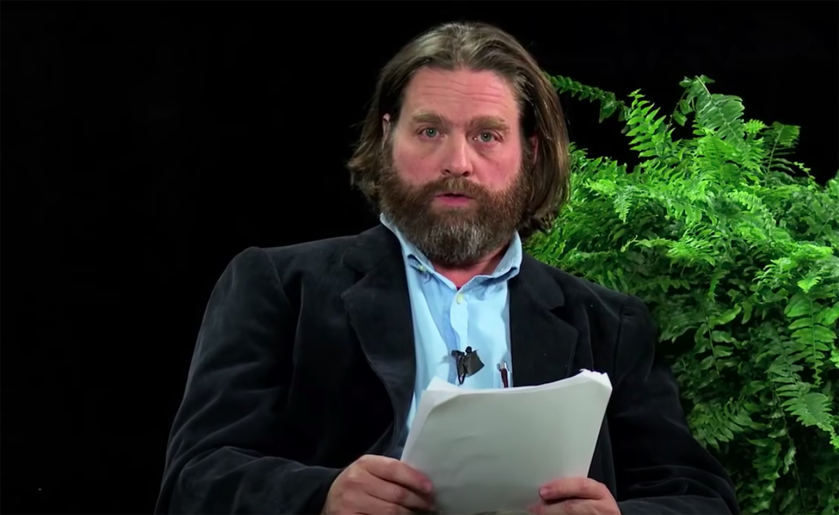 Не многим гостям удается выдержать напор комика. Крепкий орешек Брюс Уиллис даже пытался закурить во время съемок, чтобы снять напряжение, но ведущий отобрал у него сигареты. У Зака нет никаких рамок: он требовал от Барака Обамы показать кенийское свидетельство о рождении и отлупил ремнем Джастина Бибера. А у Бри Ларсон спросил, почему ее назвали в честь сыра бри, а не моцареллы. Зак довел до истерики даже Брэда Питта. После фразы «Ты, наверное, совсем не загораешь, потому что всегда ходишь в тени своей жены» актер плюнул в лицо ведущему. Спорим, вы уже хотите увидеть, как это было?