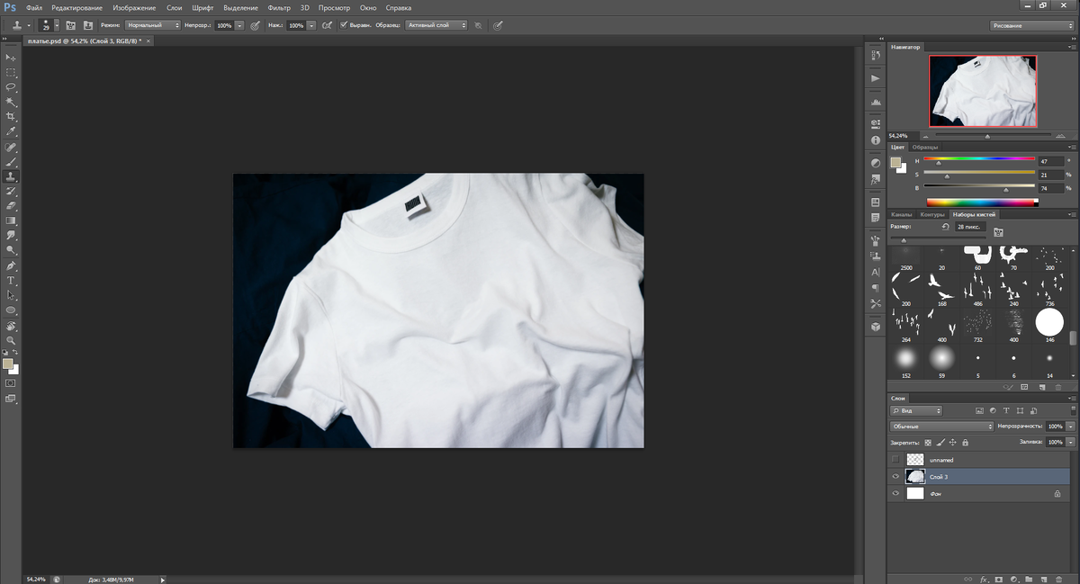 В этой короткой статье я покажу вам как можно наложить любой логотип на фотографию вашей одежды. Итак, я открыл в фотошопе фотографию белой футболки: Затем я нашел в формате .png логотип компании Balenciaga и открыл его в фотошопе: Нам нужно сохранить изображение футболки в формате .psd. Нажимаем сочетание клавиш Ctrl+S или Файл>Сохранить .Сохраняем без логотипа! Теперь выбираем инструмент Move Tool или нажимаем клавишу V. Подтаскиваем логотип куда нам нужно и с помощью комбинации клавиш Ctrl+T поворачиваем и уменьшаем или увеличиваем изображение логотипа. Находясь на слое с логотип открываем верхнюю вкладку Фильтр>Искажение>Смещение. Ставим такие же настройки и жмем ОК. В открывшемся окне выбираем наш сохраненный файл .psd с футболкой. У меня это футболка.psd. Готово! Теперь наш логотип исказился по форме складок и выглядит реалистично.