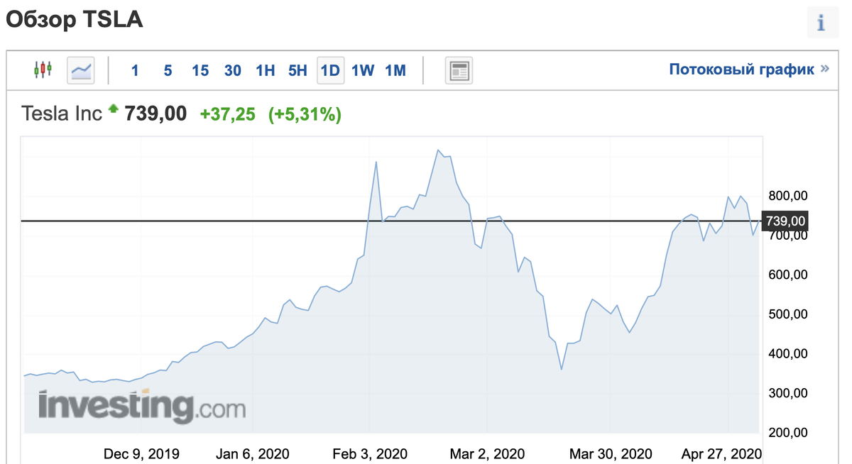 Трейдинг на фондовом рынке Для примера возьмём акции компании Тесла: Можно было бы в декабре 2019 взять 3000 долларов, купить на них 10 акций (по 300 долларов за акцию). Потом в феврале-марте 2020 продать по 900 за акцию и из 3000 сделать 9000 долларов. Потом в конце марта опять купить примерно по 300 за акцию и в апреле продать по 800 за акцию и получить таким образом 24000 долларов из 3000 долларов. Всё это выглядит очень просто и кажется, что осталось только пойти на фондовый рынок и срубить кучу бабла. На самом деле, всё это очень не просто. Проведите эксперимент – возьмите любой график, отмотайте в прошлое и пробуя предсказывать куда двинется цена открывать его постепенно. При большом количестве повторений вы заметите, что у вас получается угадывать в 50% случаев. Таким образом, на каждую одну успешную сделку будет приходиться одна не успешная сделка. Успешные трейдеры В интернете куча людей, которые утверждают, что они имеют беспроигрышную стратегию заработка сотен процентов годо