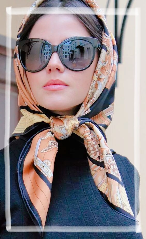 Пять небанальная способов разнообразить свой образ с помощью платка. Первый вариант. Классический способ ношения платка. Добавьте к образу солнцезащитные очки - и вы звезда Голливуда. Второй вариант. Очень смелый и стильный образ получится, если закрутить платок в чалму. Третий вариант. Для романтичного и воздушного образа можно добавить платок в волосы. Вплетите его в косу, повяжите на хвост и дополните образ локонами, или соберите волосы в пучок и аккуратно обвяжите его платком. Четвертый вариант. Как разнообразить приевшийся образ? Накиньте платок поверх пальто, платья, свитера, жакета и подпоясайтесь ремнём. Стильный образ готов! Пятый вариант. Повяжите платок на ручку сумки. Это отличный способ освежить повседневный образ.