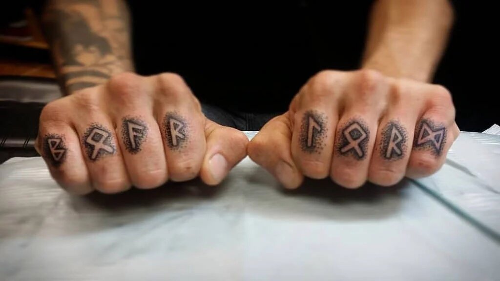 Большой популярностью пользуются скандинавские орнаменты и стилизованные изображения тотемных животных или атрибуты тех или иных божеств: Вороны или Волки Одина, Молот Тора, Мировой ясень Игдрасиль, Стихийные узлы, Вирд, Валькнут, Триксель.…Но если с символами все более или менее понятно, то отдельно нужно остановить внимание на татуировках в виде рунных ставов: строчных или плетеных