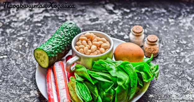 Рецепт крабового салата на каждый день. Фасоль - по вкусу, зелень - тоже. Готовится салат проще простого, самое сложное - сварить яйцо)))