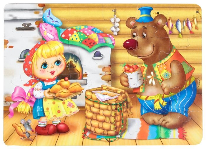 Жили-были дедушка да бабушка. Была у них внучка Машенька. Собрались раз подружки в лес - по грибы да по ягоды. Пришли звать с собой и Машеньку. - Дедушка, бабушка, - говорит Машенька, - отпустите меня в лес с подружками! Дедушка с бабушкой отвечают: - Иди, только смотри от подружек не отставай - не то заблудишься. Пришли девушки в лес, стали собирать грибы да ягоды. Вот Машенька - деревце за деревце, кустик за кустик - и ушла далеко-далеко от подружек. Стала она аукаться, стала их звать. А подружки не слышат, не отзываются. Ходила, ходила Машенька по лесу - совсем заблудилась. Пришла она в самую глушь, в самую чащу. Видит-стоит избушка. Постучала Машенька в дверь - не отвечают. Толкнула она дверь, дверь и открылась. Вошла Машенька в избушку, села у окна на лавочку. Села и думает: „Кто же здесь живёт? Почему никого не видно?.." А в той избушке жил большущий медведь. Только его тогда дома не было: он по лесу ходил. Вернулся вечером медведь, увидел Машеньку, обрадовался. - Ага, - говори