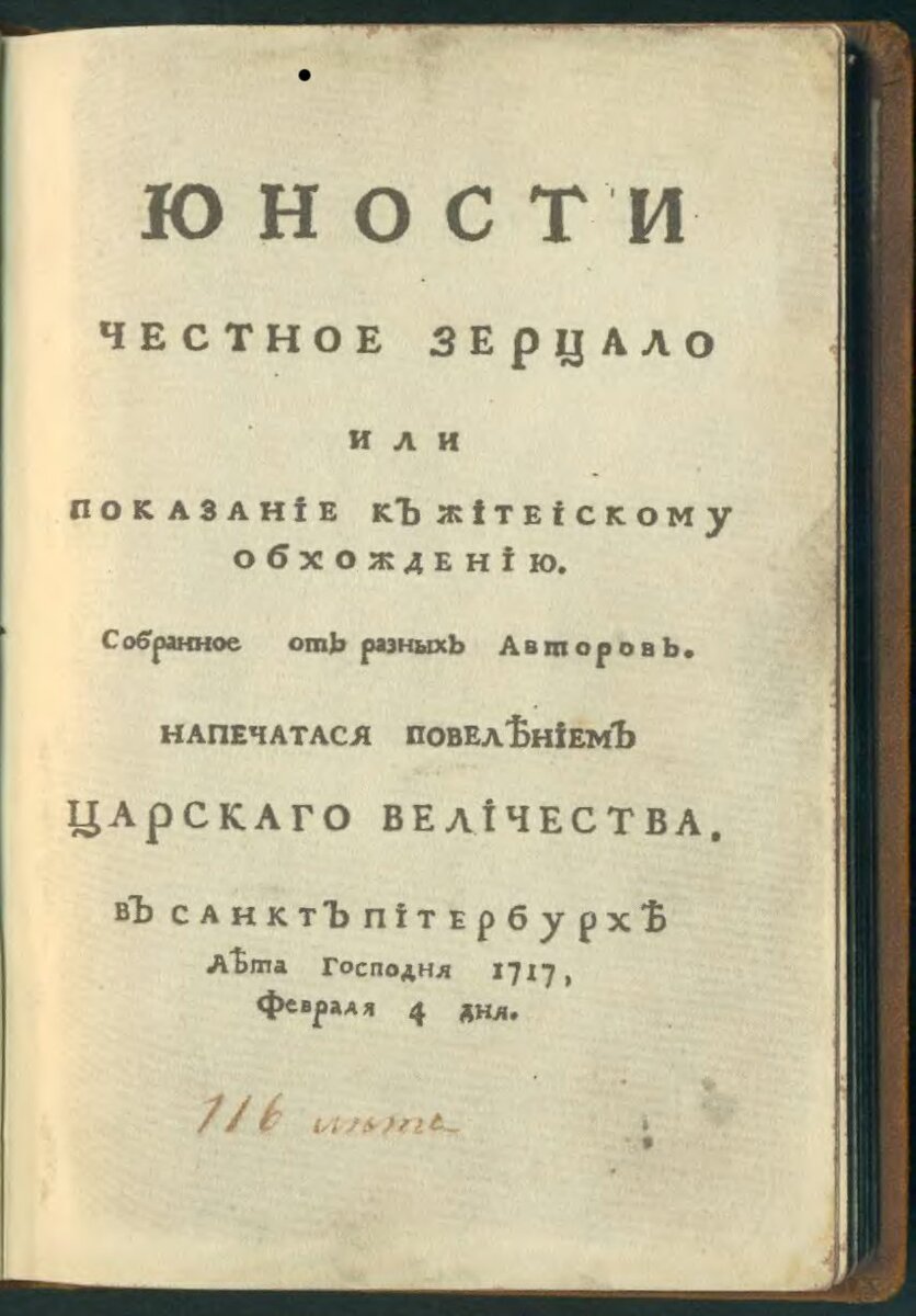 «Такожде когда в беседе или в компании случится в кругу стоять, или сидя при столе, или между собою разговаривая, или с кем танцуя, не надлежит никому неприличным образом в круг плевать, но на сторону, а ежели в каморе, где много людей, то прими харкотины в платок, а также невежливым образом в каморе или в церкви не мечи на пол, чтоб другим от того не згадить или отъиди для того к стороне (или за окошко выброси), дабы никто не видал, и подотри ногами так чисто, как можно». "Юности честное зерцало" (1717)
