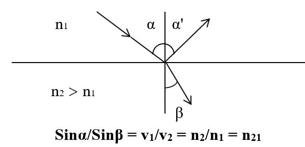 Отношение синуса угла падения к синусу угла преломления величина постоянная и равная отношению скорости света в первой среде к скорости света во второй среде.