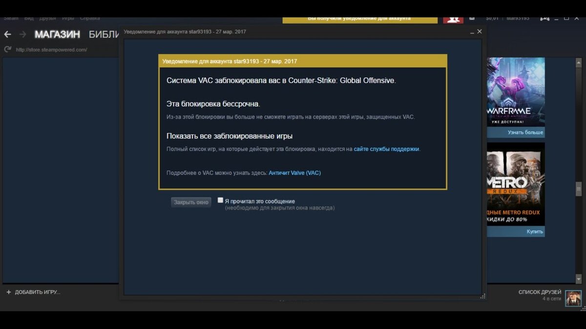 VAC-игровая блокировка не позволяющая вам играть ММ и напарники в CS-GO , так-же вы не можете ничего купить , продать , предложить трэйд и принять его даже если вы вложили 10тысяч рублей . VAC можно получить за использование сторонних программ таких как , Skinchanger , Vx , Aim и тд . VAC снять можно несколькими способами 1 написать в поддержку Steem если вы не использовади сторонних программ 2 Большое количество людей может подтвердить , что вы ничего не использовали . Надеюсь чем-то помог .