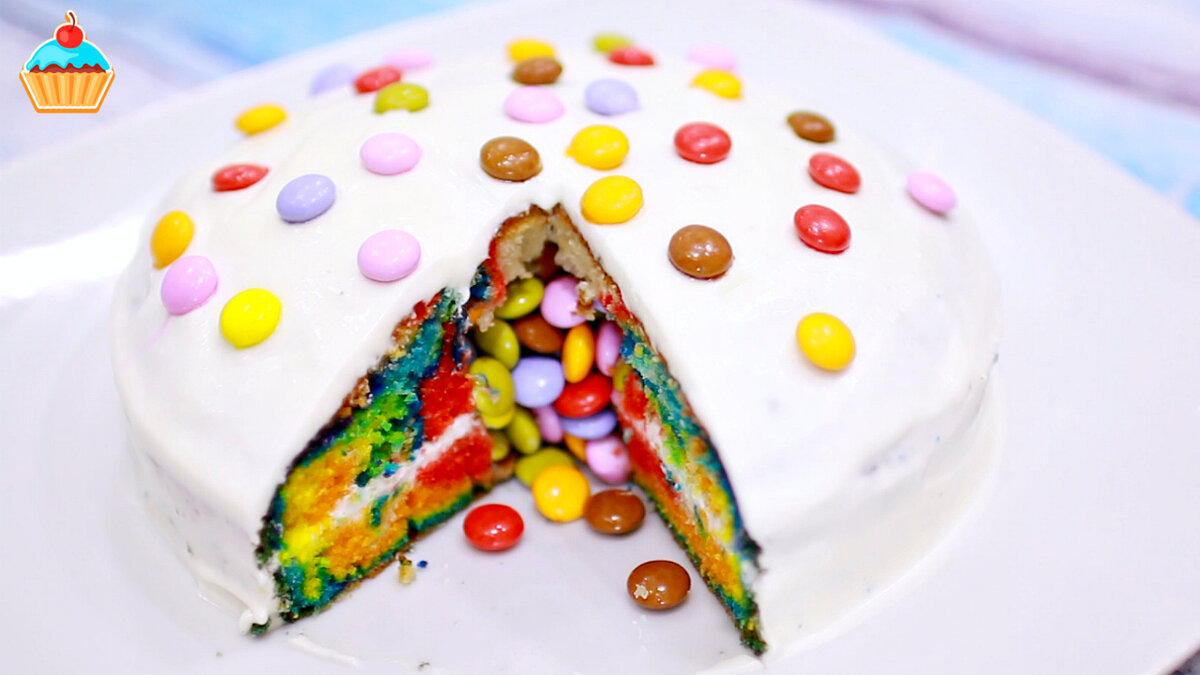 Разноцветный торт с сюрпризом. Цветной тортик со сливочным кремом.