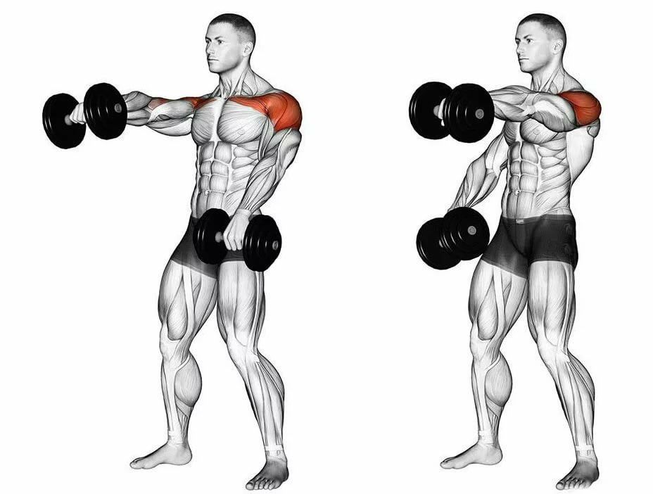 1. Поочередный подъем веса перед собой Первое упражнение из сегодняшней тренировки. Работаем на передние дельты. Делаем 3 подхода по 10 раз на каждую руку. Не гоняйтесь за весами. Здесь важна техника правильного выполнения. 2. Разводим вес в стороны Эффективное упражнение на плечевой пояс, которое задействует множество мышц. Делаем так же 3 подхода по 10 раз. 3. Вращение веса вокруг головы Упражнение развивающее силу и выносливость плеч. Есть в арсенале каждого бойца, любого вида единоборств, будь то бокс или ММА. Работаем 2 по 15 в каждую сторону 4. Армейский жим сидя Не важно, будь то штанга, гантели или два мешка с г****м. Садитесь на любой стул, спину держим прямо и работаем 3 по 10. 5. Удержание веса перед собой Лучшее упражнение на развитие сильных дельт и сильных рук. Взяли стул и стоим. Делаем 2 подхода до предела. 6. Работа на трапецию Заключительное упражнение. Делайте в конце и других тренировок. Не буду долго расписывать, но запомните - это заключительное упражнени