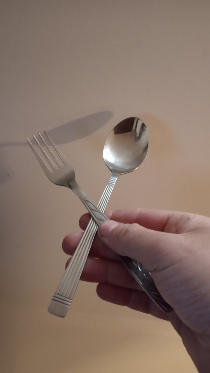 Всем привет! Сегодня нам понадобится вилка или ложка - 1 штука, рука - 1 штука (правая для правшей, левая - для левшей, для экстремалов можно менять руку на противоположную). Так как я правша, покажу на примере двух приборов во избежание недопонимания. Итак, сначала на примере ложки: Как видите, она лежит в руке легко, большой палец предохраняет ложку от опрокидывания, указательный задает направление движения, а остальные три пальца (или кому как повезло) элегантно поджаты, чтобы не окунуть их случайно в пищу. С вилкой проделываем все те же самые движения, смотрите, ничего сложного, все делаем по аналогии с ложкой: Так же стоит отметить скрытые возможности ложковилок. В одно мгновение их можно превратить в грозное оружие против неприятеля. Боевая позиция так же удобна для детей дошкольного возраста, об этом нюансе необходимо помнить родителям малышей во избежание недопонимания в семье. Всем добра и взаимопонимания! Подписывайтесь! Ставьте лайки! И помните, что правильное держание с