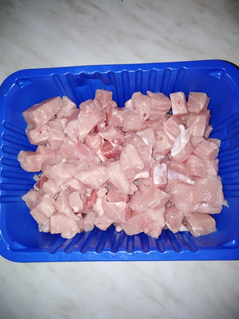 Гуляш из свинины Список продуктов: Свинина - 600 гр. Лук - 2 шт. Морковь - 2 шт. Томатная паста - 100 гр. Мука - 3 ст. ложки Смесь овощей, смесь перцев Лавровый лист - 3 шт. Соль, зелень по вкусу. Лук, морковь измельчить и тушить 10 мин.