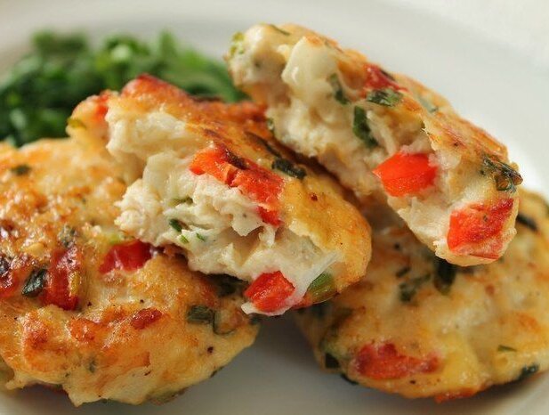 160 ккал на 100 грамм Ингредиенты: 1.Грудка куриная - 600 гр 2.Капуста цветная - 300 гр (половина небольшого вилка) 3.Перец болгарский - 1 шт. 4.Сыр твердый - 70-80 гр 5.Яйцо - 2 шт. 6.Сметана - 2 столовые ложки 7.Мука - 2 столовые ложки 8.Зеленый лук - небольшой пучок, петрушка,соль и молотый перец - по вкусу Масло растительное для обжаривания котлет Приготовление: Куриное филе нарезать мелким кубиком,перец болгарский тоже нарезать мелко.Цветную капусту разобрать на соцветия и отварить в подсоленной воде 5 минут,воду слить,капусту нарезать мелким кубиком.Добавить нарезанную зелень. Сыр натереть на крупной терке,добавить яйца,сметану,муку,соль и молотый перец Фарш хорошо перемешать,накрыть крышкой и поставить в холодильник на 1 час Достать фарш из холодильника. Смочить руки в холодной воде и сформовать котлетки средней величины. Обжарить их на растительном масле с двух сторон на небольшом огне до золотистого цвета.Готовые котлеты сложить в сотейник,