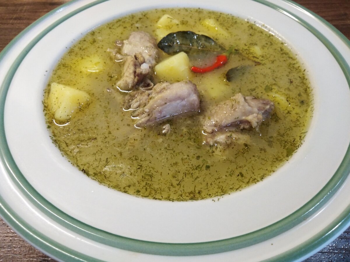 Вспомните – в детстве на улице еда всегда казалась вкуснее. Дома родителям еду в тебя приходилось запихивать, а на улице… И еще на даче! Когда набегаешься, всех лягушек в бочке перекупаешь, всем соседям надоешь, в ближайшую рощу сносишься, на чердаке все переворошишь – после этого и аппетит звериный! А пока ты был занят мама или бабушка успеют и салат сообразить, и зелени нарвать, и колбаски подрезать, и густой суп приготовить! На скорую руку, и изысканным его не назовешь, но боже, какой же он был вкусный! Курица на кости варилась минут сорок вместе с мелко нарезанным лучком, лавровым листом, щепоткой соли и черного перца. Закидывалась не мелко нарезанная картошка и варилась почти до рассыпчатости. В самом конце суп солился до нормальной солености, добавлялась зелень, еще лавровый лист, острый перец и чеснок целыми дольками. Кастрюля снималась с огня, ставилась на стол, накрывалась крышкой и стояла так, пока шли последние приготовления к обеду… Понадобилось: Курица на кости – 1 кг.