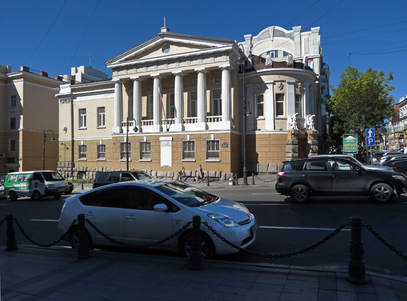 На Океанском проспекте ещё стоит здание бывшего консульства Страны восходящего солнца (1916). До русско-японской войны белый флаг с красным кругом уже вился на том же самом месте - торговое представительство Японии действовало во Владивостоке с 1876 года. Соответственно, и японцы ехали сюда по торговым делам.