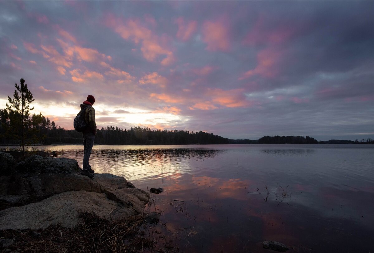 Я вышел из дома за час до восхода. Все как обычно. Я так делаю почти каждый день, этой карантинной весной. Жалко ,что у большинства людей нет возможности пересидеть все эти ограничения на природе. Я такую возможность пока нахожу. За час до восхода, на серых северных тучах стал появляться ярко алый цвет. Пришлось резко просыпаться и бежать. Бежать в прямом смысле слова. 1,5 км, и вот я стою на скалистом берегу одного из любимых озер. Небо уже полыхает немного слабее. Но так акварельно и спокойно вокруг. Легкий холодный ветерок сдувает остатки дымки. По небу плывут то тучи, то просветы. Все это чередуется, и ты находишься тут как в центре вселенной. Один,в звуках дятлов и уток. Всплески щуки , и крики чаек, где то там над горизонтом. Воздух как снадобье. Я всему рад, хотя возможно не надо бы. Не надо бы так радоваться дню. Не надо бы так верить в чудеса. Но в прочем, напрягаться ник чему. все по своим местам ( Сергей Рудаков ) Утро это то, что пропускать непростительная о