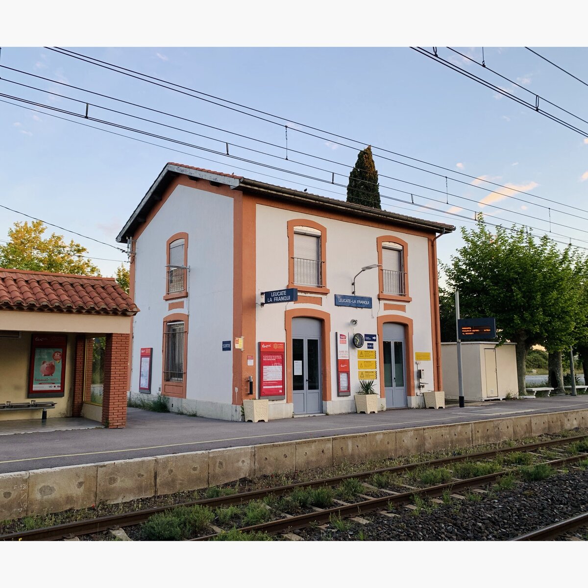 Первые робкие лучи апрельского солнца, свежий морской бриз, яркая зелень деревьев и пьянящий аромат полевых цветов... Способна ли маленькая железнодорожная станция провинциального города вызвать такие яркие и тёплые воспоминания? К счастью, на практике мы убедились – способна! Игра теней и света, нежная весенняя зелень, холодный после ночи воздух, будто застывший под первыми лучами солнца, аскетичность и простота архитектуры и почти полное отсутствие людей - именно такой запомнилась нам станция Leuсate - La Franqui 💖 Чтобы закрепить и расширить ассоциативный ряд, а также побудоражить воображение, в ожидании поезда или автобуса, пройдитесь по окрестностям – вам откроются: • ухоженные поля, разрезанные рядами виноградников, • особый цимес, увидеть, как поезд на большой скорости проносится над ними; • сосновый бор, где ветер нежно колышет пушистые шапки массивных деревьев, а солнце через них пробивает себе путь… Здесь не обошлось даже без моей любимой рубрики - учим язык по вывескам и