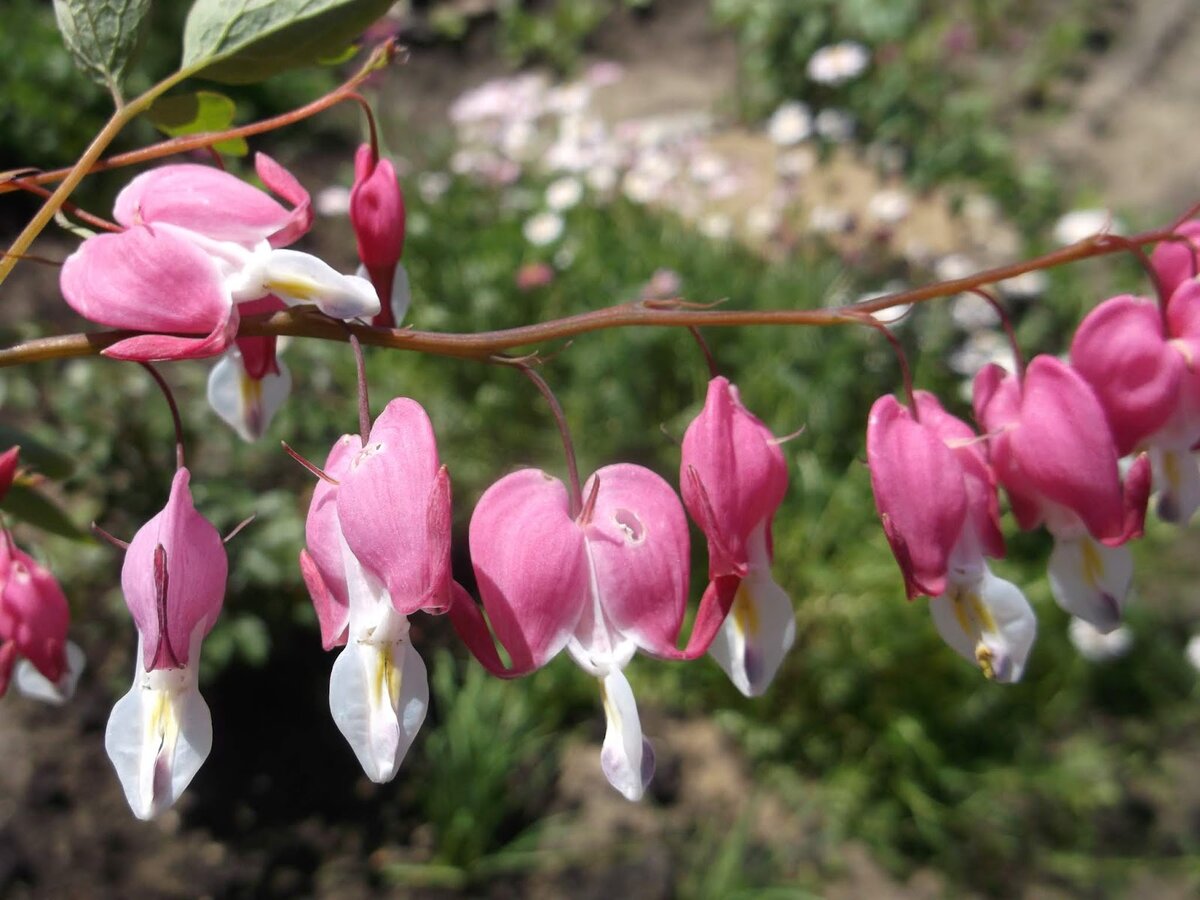 Необыкновенные"разбитые сердечки" с "капающей слезой" на кончике её цветков и на тоненьких ножках подрагивают при малейшем движении. Используется для групповых посадок,альпинариев,теневых миксбордеров.Великолепна в срезке. Посев. Перед посевом семена замочить на сутки ,затем нарушить оболочку семени(надколоть).Семена располагают по поверхности влажного субстата,закрывают стеклом и ставят в холодильник на 2-3недели.Затем помещают на прорастание при температуре 18-22 градуса. После появления 2 пар настоящих листьев сеянцы пикируют.На постоянное место высаживают в фазе 5-6 листьев. Вырастить дицентру из семян очень трудно(у меня не получилось). Уход. Предпочитает слегка затенённые места и сравнительно богатые,лёгкие почвы.Поливать нужно так,чтобы почва постоянно оставалась влажной.Очень зимостойка и на одном месте может расти несколько лет. Цветение.май-июнь на второй-третий год. Длинное мясистое корневище уходит глубоко в почву.Перисто-рассеченные листья имеют сизоватый оттенок.Диаметр