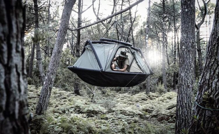 Французские дизайнеры из студии Exod представили свое видение домика на дереве — Exod Home, надувную палатку с жестким каркасом, которую можно как устанавливать на ровной поверхности земли, так и подвешивать на дереве. Exod Home можно приспособить для комфортного временного проживания везде неважно, где бы вы не находились – в безлесном пустынном месте, в густом лесу или под единственным в ближайшей округе крепким деревом Надувная палатка Exod Home разработана на основе архитектурной концепции тенсегрити – это принцип построения прочных конструкций из тросов и стержней путем стабилизирующего сочетания растягивающих и сжимающих сил. Основной корпус палатки представляет собой надувной трубчатый экзоскелет, который приобретает форму всего за 30 секунд накачки. После накачивания палатка просто ставится на грунт, как обычная палатка. Если необходимо подвесить палатку на дереве, можно это сделать одним из двух способов, каждый из которых предполагает использование телескопической рамы из