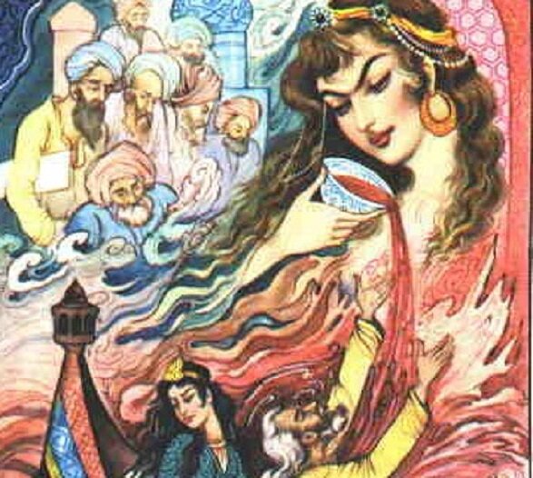 О чём думает старец Хафиз сидя с милой у ручья? Какую ещё ветку принесёт волна?.. Твоих волос каштанных плен Мне раем сладким кажется. От аромата колдовского Совсем безумным сделался. Твой стан волшебный, стан богини Готов лобзаньем покрывать я. Твои холмы, о пери, дивны Готов дыханьем согревать я. Одна лишь в том беда, Мой лал, о Лейла, Что только-то во сне тобою овладал я. Борис Евдокимов