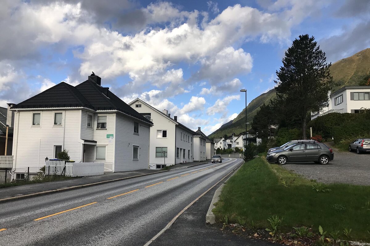 На сегодня у меня оставался небольшой отрезок до Олесунна, но тем не менее он дался мне тяжеловато. С утра я тщательно проверил все вещи, вспоминая как забыл смазку для цепи в кемпинге, и отправился в путь Погода была роскошная, светило солнце, но как обычно Норвегия могла приготовить сюрприз и здесь. Жалко я не разбираюсь в ягодах, по пути иногда встречались разные и вкусные на вид, но конечно пробовать их я не рисковал. Приближаясь к Норвежскому морю (хотя мне больше нравится считать это за океан), заметил явное усиление ветра в геометрической прогрессии. Не забываем, что благодаря Гольфстриму, который царит в этой части, здесь достаточно тепло, даже зимой, но есть и обратная сторона, в ураганном ветре. На велосипеде вас просто сдувает в этих местах. Заметил интересную деталь, штендеры стоят на прорезиненных пружинах, а знаете зачем? Когда начинается резкий порыв ветра, их просто нагибает к земле, и они не улетают). Меня правда, в такие моменты почти сносило. Офигенные цены вдали от