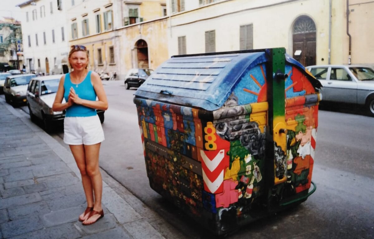 Туристов в итальянском городе Пиза привлекает исключительно падающая башня – все мчатся к ней с таким энтузиазмом, словно верят, что она и в самом деле вот-вот упадет. Стояла. Стоит. По-прежнему криво. И выпрямлять ее никто не собирается, потому что перекрывать источник благосостояния города может только сумасшедший. Такими же здесь иногда выглядят и туристы. А вот найти в этом знаменитом месте веселый мусорный бак, да еще и запечатлеть рядом с ним себя, любимую, удается не каждому. Изольда Тихоновна из фильма «По семейным обстоятельствам», могла бы мной гордиться – мне, как и ее сыну, немолодому и не очень удачливому художнику (помните в этой роли неожиданного Евгения Евстигнеева?), удалось запечатлеть итальянскую улицу с крупным объектом, которого там, скорее всего, уже нет. Европейские страны перешли на раздельный сбор мусора. Мои подруги в прошлом году обнаружили на набережной испанской Фуенхиролы милые помоечки со специальными знаками, изучили и с небывалым рвением стали ра
