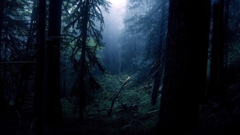 Пробродив целый день по лесу, не помню, уж, каких птичек отец подстрелил, к вечеру остановились на ночлег. Заночевать решили под большой раскидистой елкой, нарубили лапника, чтобы не сыро было спать на земле, натаскали валежника для костра, чтоб на всю ночь хватило, разожгли костер, покушали и стали готовиться ко сну. Отец, видно, сильно устал за день, с войны-то пришёл весь израненный, лег первым, а мы с Индусом еще у костра сидели. Вокруг уже темнота была, дальше света, отбрасываемого костром, ничего не видно, и такая тишина стояла, как будто все вокруг повымерло.